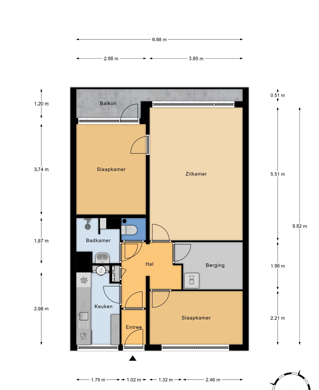 - Totaal aantal kamers: 3