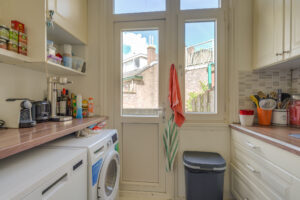 Gehele achterzijde voorzien van kunststof kozijnen met dubbele beglazing;