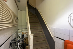 Begane grond: Woningentree, ruime hal (tevens mogelijkheid voor het plaatsen van fietsen) met trapopgang naar de bovenwoning;